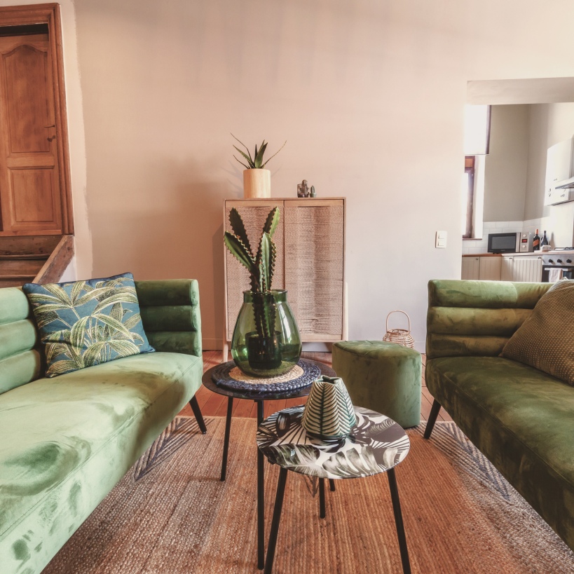You will be immediately charmed by the boho-chic style of this family suite located in the 17th-century main house. It has preserved its old-world charm and features beautiful living spaces that are perfect for gathering with family or friends.