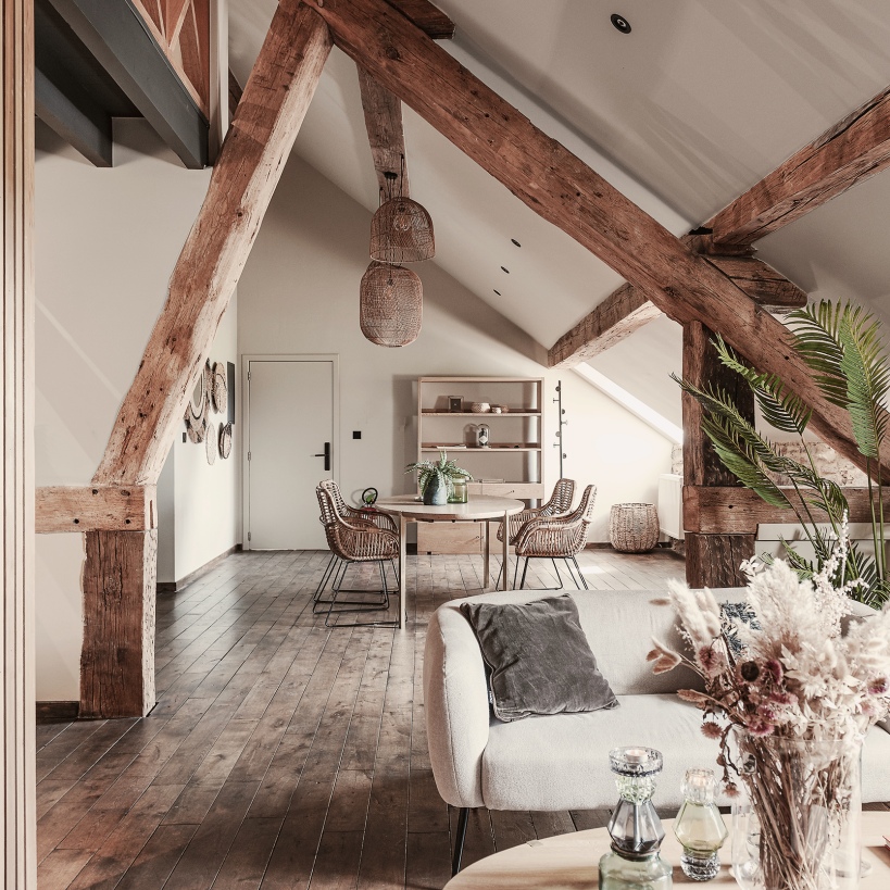 You will be immediately charmed by this family suite located in the attic of the 18th-century barn. It has preserved its old-world charm and features beautiful living spaces that are perfect for gathering with family or friends.